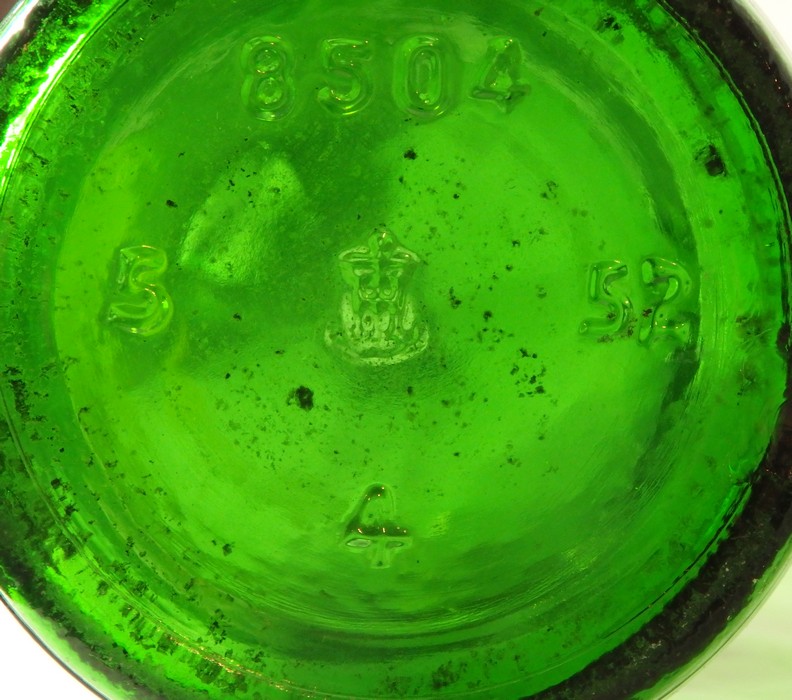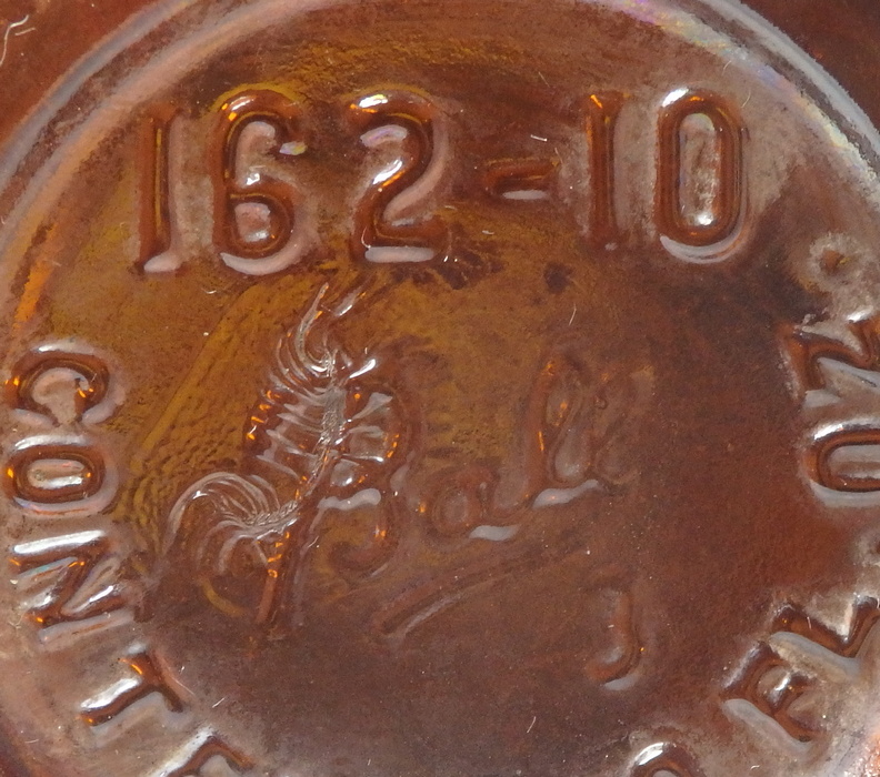 The WIS. GLASS Co. MILW mark is another mark from Wisconsin Glass Company we find on a Copper Country bottle: lightning-stoppered Union Brewery #34. This bottle bears the mark on its front heel, an atypical location for a marker's mark.